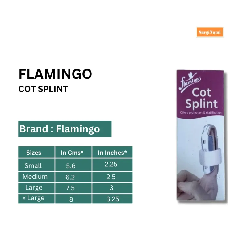 While I don't have specific information about the Flamingo Cot Splint, splints in general are commonly used in medical settings and come in various forms, including rigid and flexible options. They are typically made of materials such as plastic, metal, or foam.