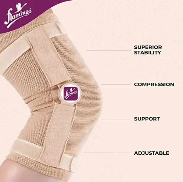 The Flamingo Hinged Knee Cap for knee pain is made of breathable elastic with bi-axle aluminum hinges. Easy-to-wear knee cap for knee pain. Knee Support is made up of high abrasion resistant fabric, which ensures more extended durability of the product.
