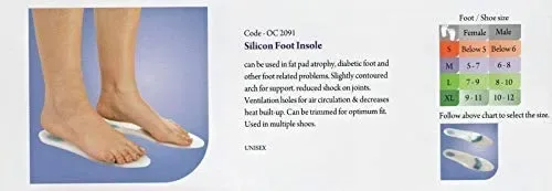 Material: The Flamingo Silicon Foot Insole is typically made of high-quality medical-grade silicone. This material is hypoallergenic, durable, and provides excellent shock absorption and cushioning.