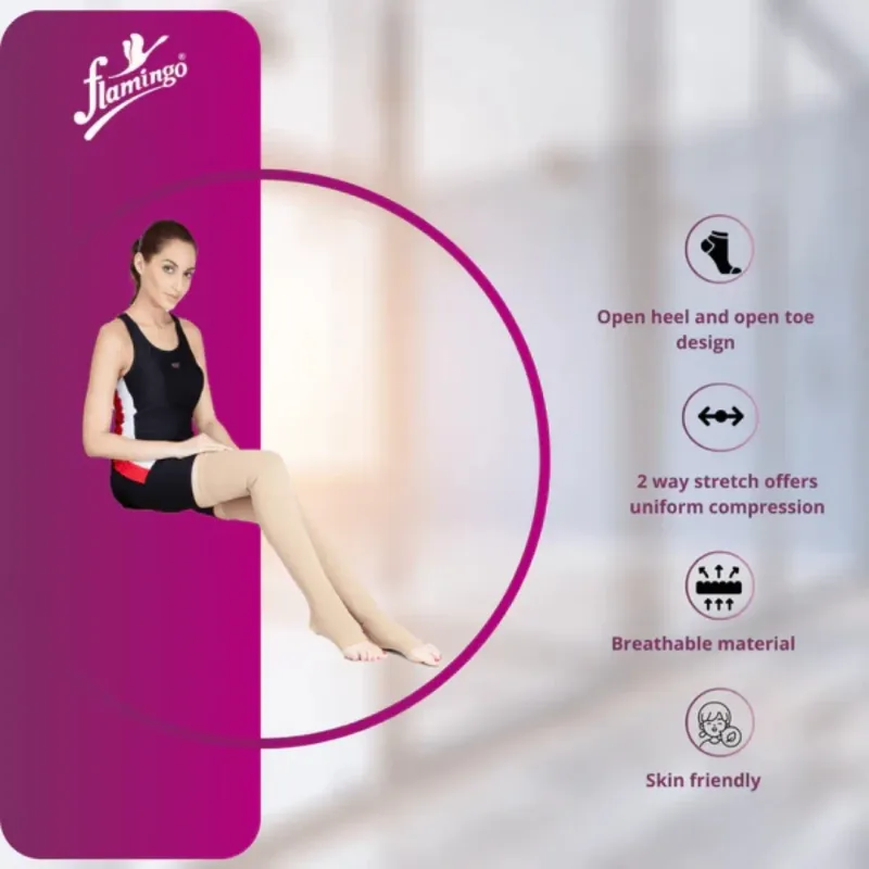 Flamingo Varicose Vein Stockings are also known as support stockings used to provide gentle compression and support for individuals experiencing varicose veins, leg fatigue, or swelling.