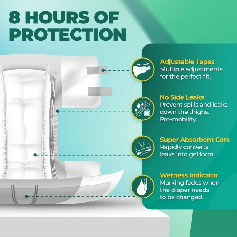 This diaper ensures you stay dry and worry-free throughout the day. It has high-absorbency layers that quickly lock in moisture and prevent leakage, keeping the skin dry and healthy.