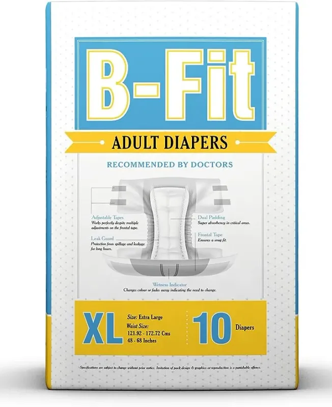 B-FIT Regular Adult Diaper is an adult care product used to provide comfort, protection, and peace of mind to adults dealing with incontinence. It is made from soft, breathable materials that are gentle on the skin, making it ideal for upto 8 hours of use.