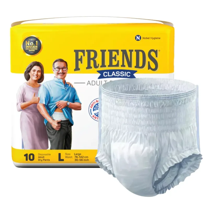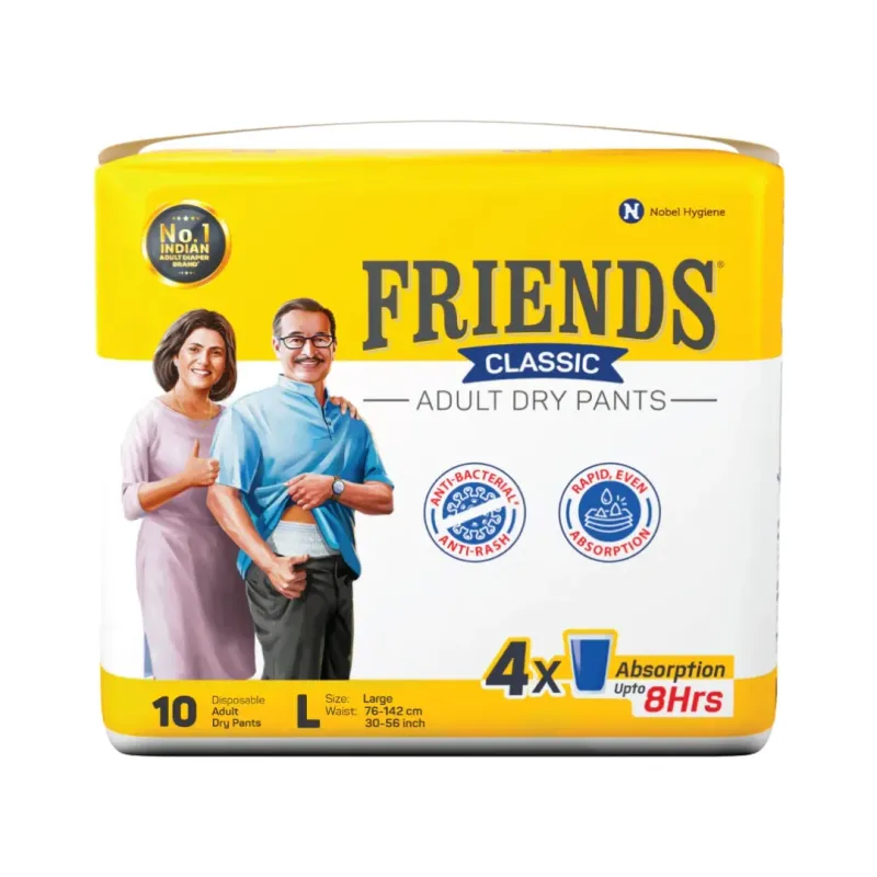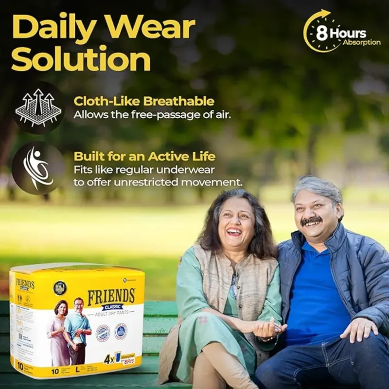 Friends Classic Adult Dry Pants is a diaper panty for adults that offer up to 8 hours of protection against leakage and moisture. It is designed to function like a disposable brief, Friends pant-style dry care diapers can be worn comfortably under one’s regular clothing.