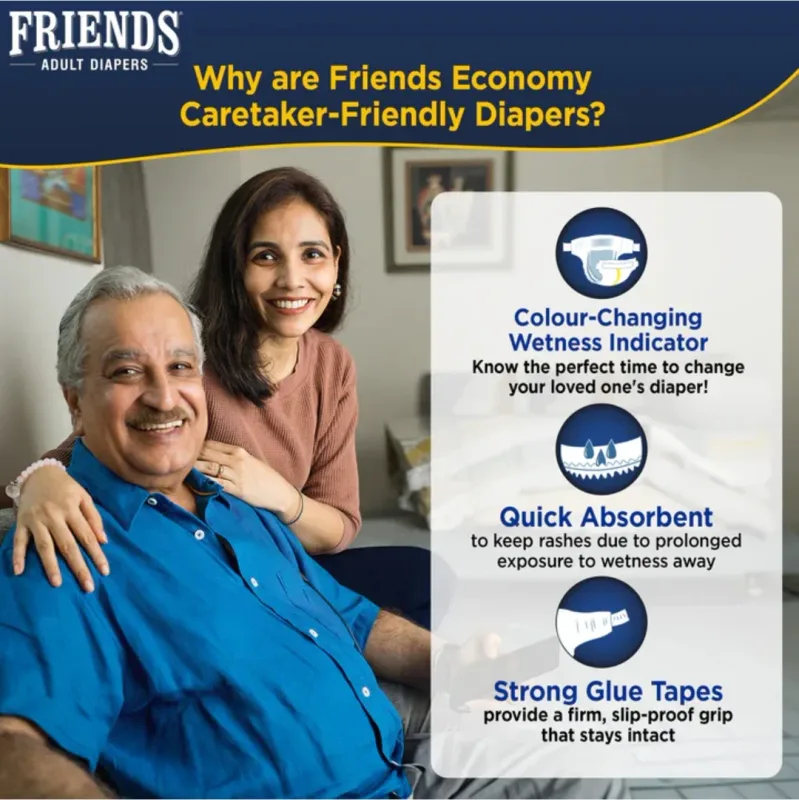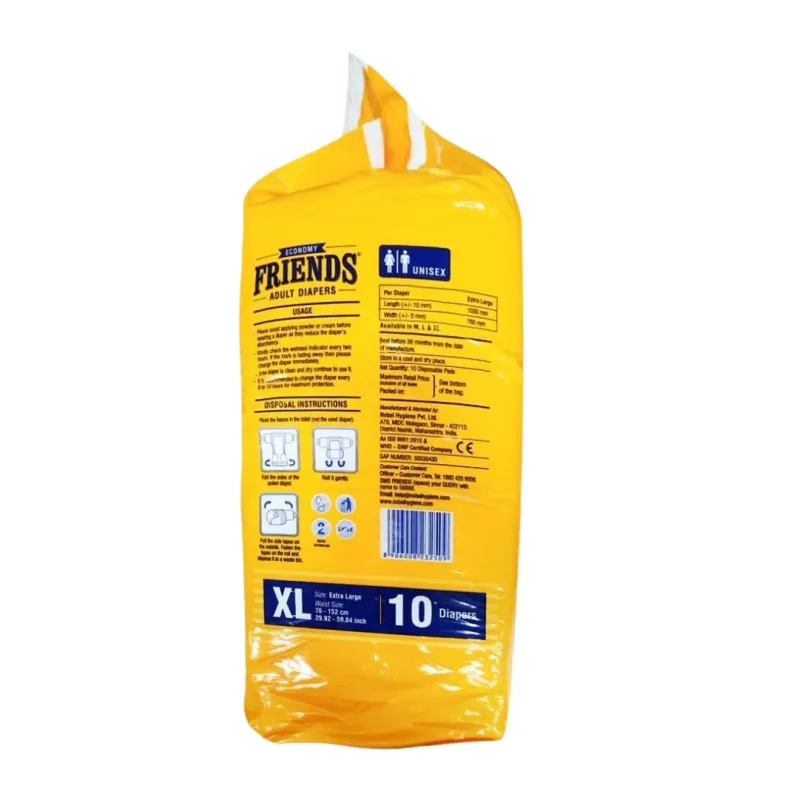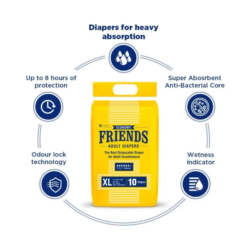 Friends Economy Adult Diapers XL is an essential product for the adults as it is used to absorb urine and stool for the patients who have trouble controlling their bladder or bowels.