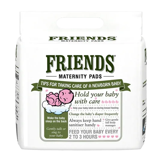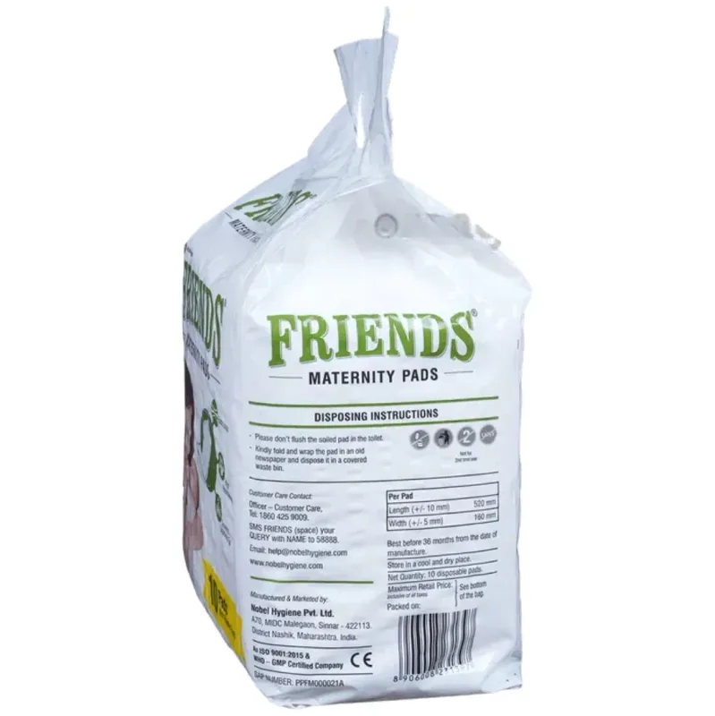 Friends maternity pads also known as postpartum pads for after delivery are used to provide maximum absorption and utmost comfort to new mothers. It comes with an elastic loop, does not require the use of underwear and is recommended for women who experience sensitivity around the vulva due to postpartum stitches, etc.