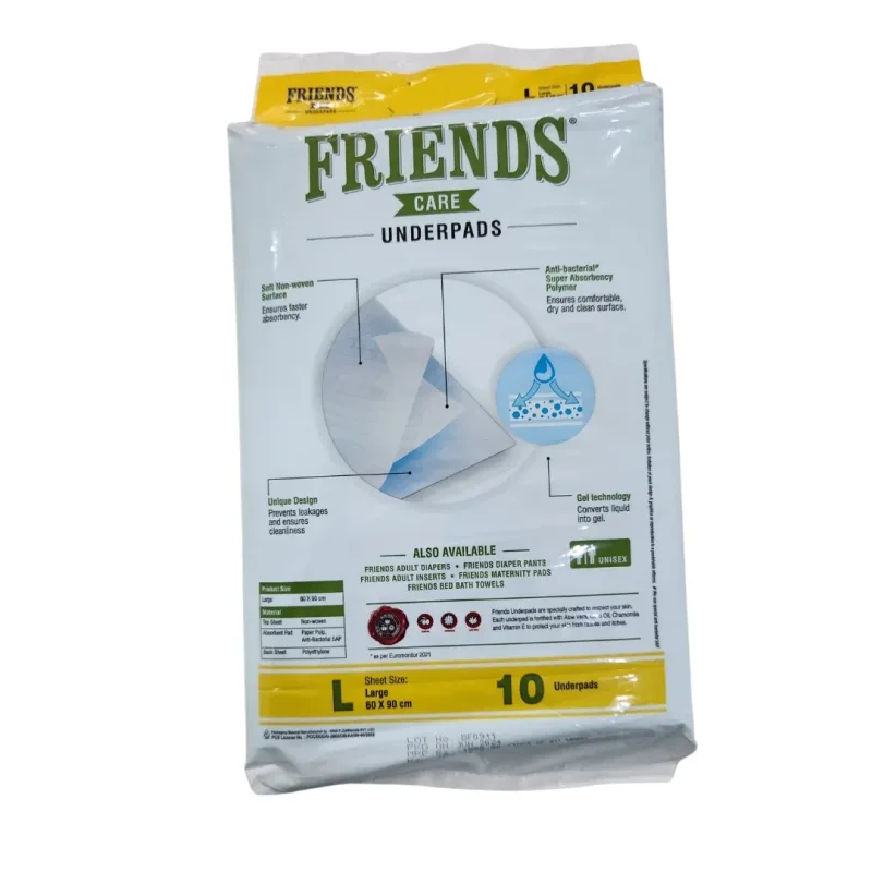 Friends Care Underpads are an essential product as it is used to help prevent bedwetting and provide a dry environment. It is also called chux pads or bed pads and is designed to give protection and absorption from moisture and spills. These are super comfortable and give extra care to the patient.