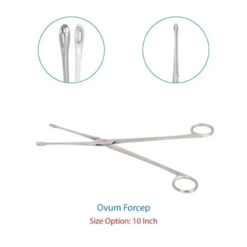 Ovum Forceps 10 Inch is a surgical instrument commonly used in gynecological procedures, especially for the removal of tissue or products of conception from the uterus.