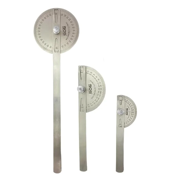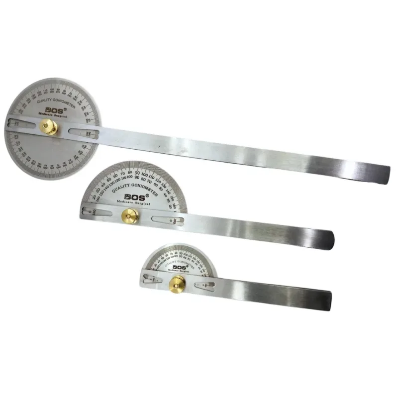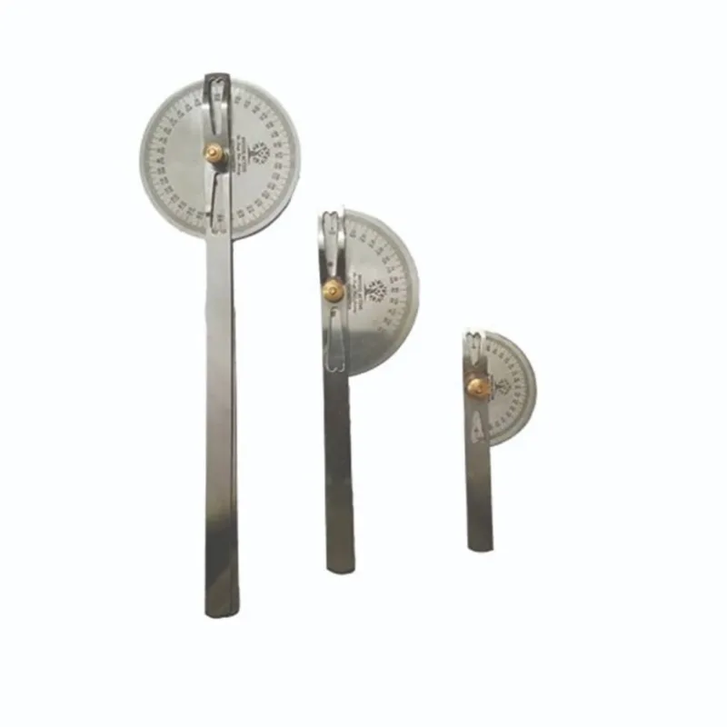 It is made from high-quality stainless steel, each goniometer provides clear visibility of movement and accurate readings through easy-to-read degree markings (0°–180° or 0°–360°). Its compact, lightweight, easy to clean smooth, and durable arms rotate freely for easy alignment with limb segments, ensuring precise and repeatable measurements.