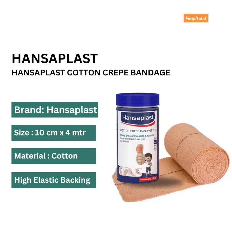 Hansaplast Cotton Crepe Bandage 10cm*4m is an important wound care product that provides complete support to the injured area while also reducing discomfort. It is made of 100% natural cotton, which is soft and comfortable.