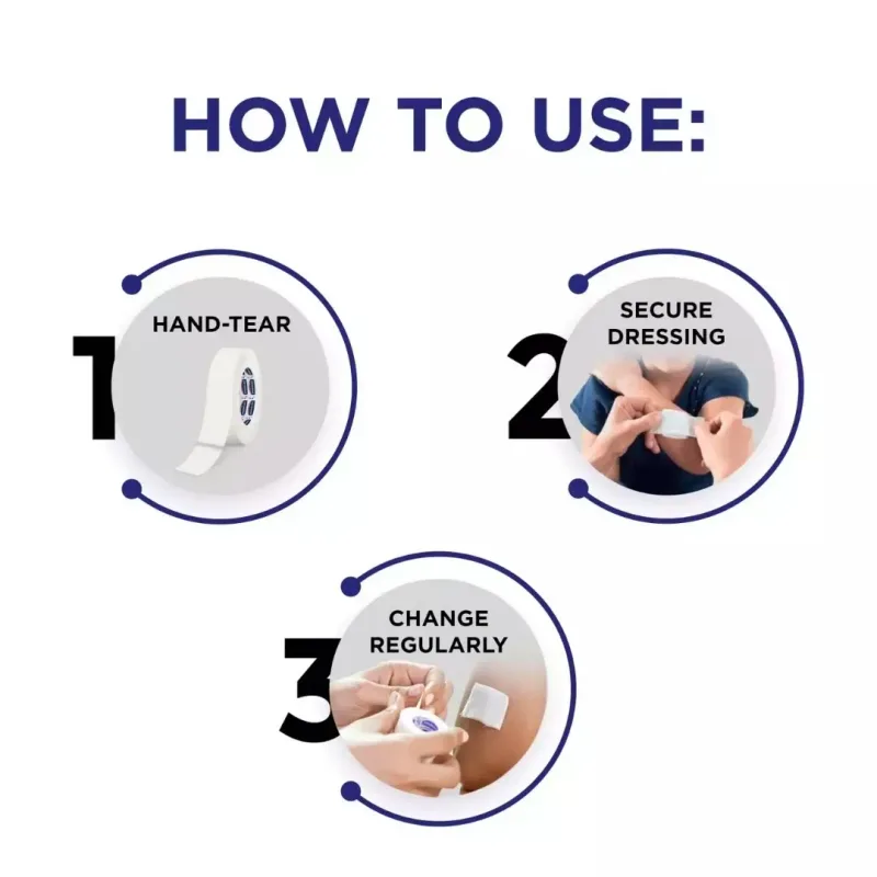 It ensures that the dressing stays secure even with prolonged use. It is also latex-free and leaves no sticky residue on the skin after removal, ensuring a comfortable and skin-friendly experience.