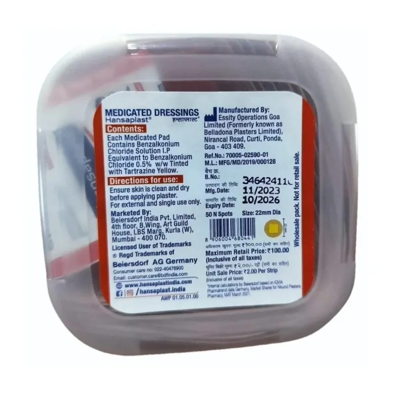 Hansaplast Spot Bandage is a medical product used to cover small wounds, cuts, and punctures, providing quick and reliable protection. It is made with soft, skin-friendly material, these spot bandages are gentle on the skin and ensure comfort even with all-day wear.