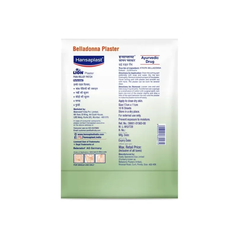 Hansaplast Lion Plaster also known as pain relief patches, is the best medical product for orthopaedic care as it helps provide relief from muscle pain mainly neck, shoulder, and back pain.