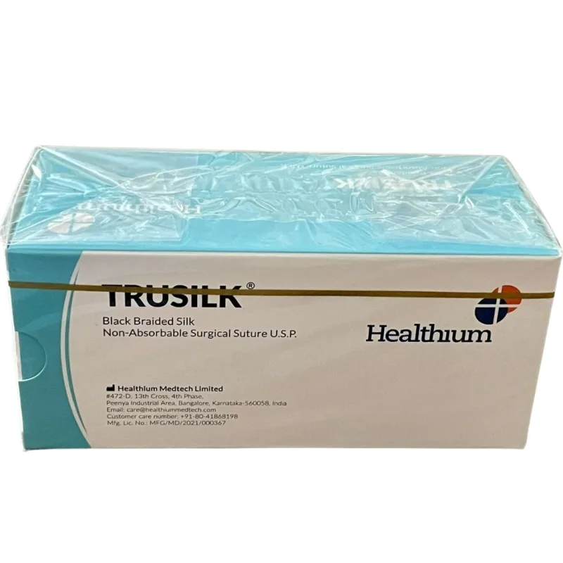 Healthium (Sutures India) Trusilk SN 5001 is a sterile, non-absorbable surgical suture made from natural silk fibers. It is braided and coated with beeswax, offering a smooth texture that minimizes tissue trauma during suturing.