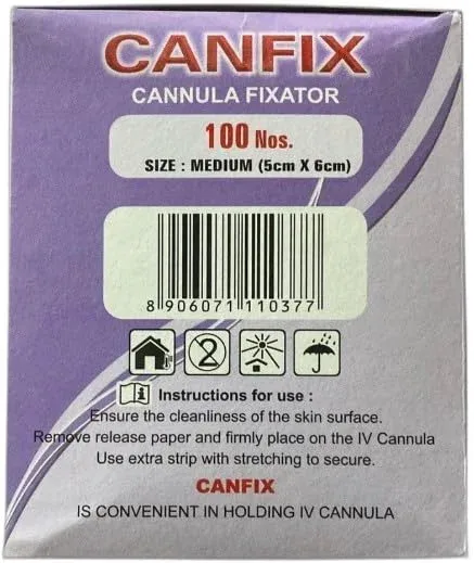Product Overview: Medicare Canfix Cannula Fixator: Cannula Fixator with Elastic Adhesive Bandage is a reliable medical device designed to securely stabilize intravenous (IV) cannulas and catheters. Made from soft, skin-friendly, and hypoallergenic materials, it ensures firm fixation while minimizing discomfort and irritation for patients. The elastic adhesive bandage allows air and humidity to pass freely, ensuring skin breathability, and features a non-allergenic adhesive with a paper liner for easy and painless removal.
