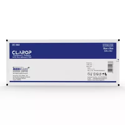 Medicare Clarop Transparent Dressing with Non-Adherent Pad is an all-in-one wound care solution used to support advanced moist wound healing. Its sterile, bacteria-free, and waterproof helps wounds heal faster while protecting them from external contaminants.