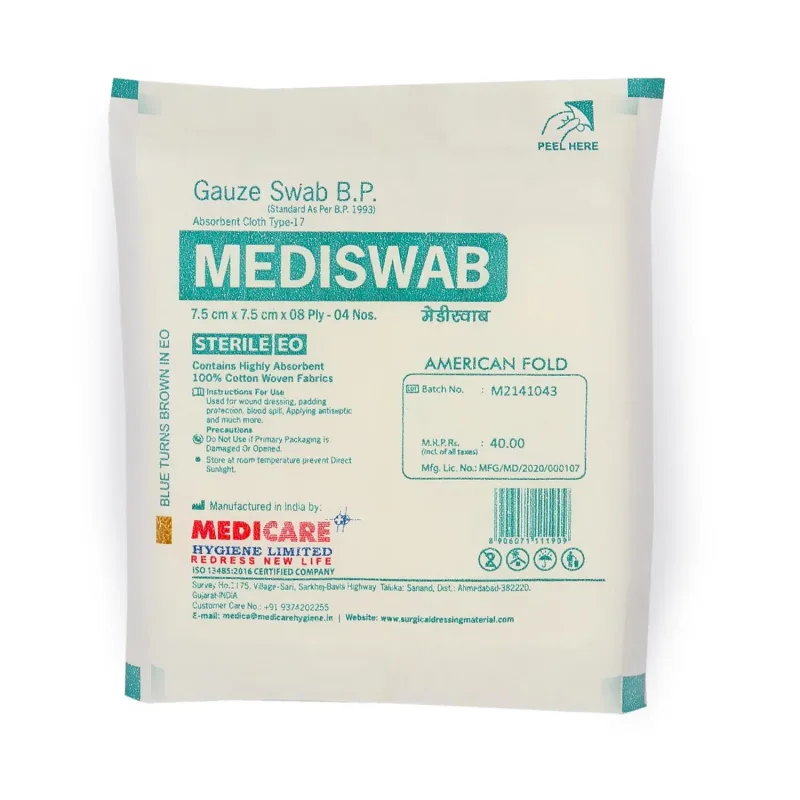 Medica Mediswab Gauze Swab Sterile (7.5cm X 7.5cm X 08 Ply) - 10 Packs of 4 pcs each is also known as gauze pads or surgical sponges is an essential product in the medical and surgical field.