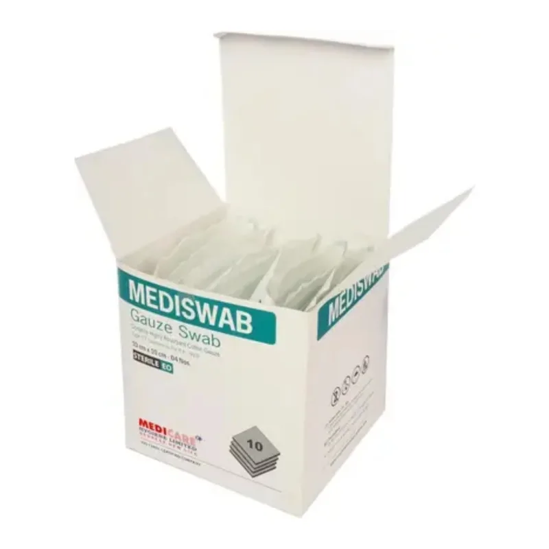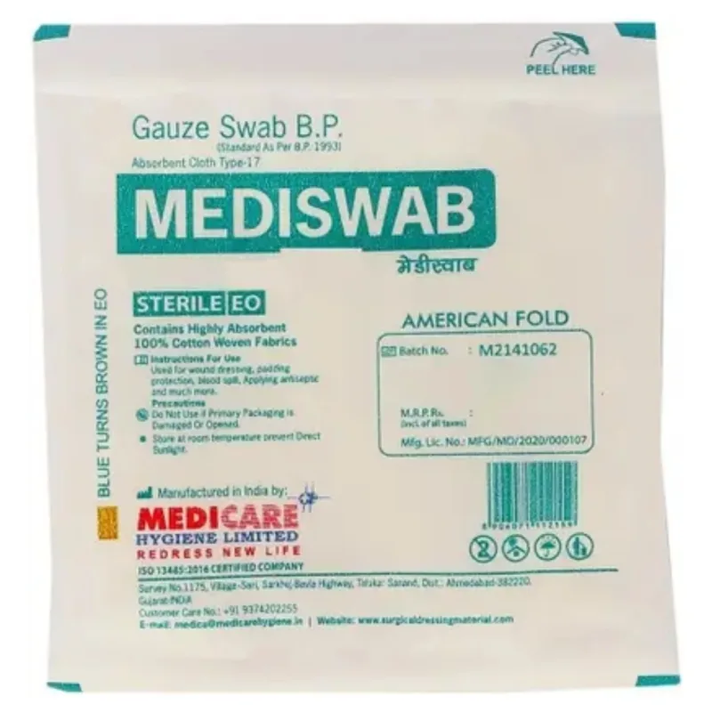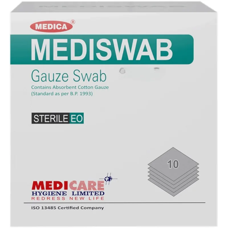 Medica Mediswab Gauze Swab Sterile, also known as gauze pads or surgical sponges is an essential product in the medical and surgical field. It is a multipurpose swab used for cleaning, drying, and dressing wounds, and can also be used to reinforce dressings and protect wounds from contamination.