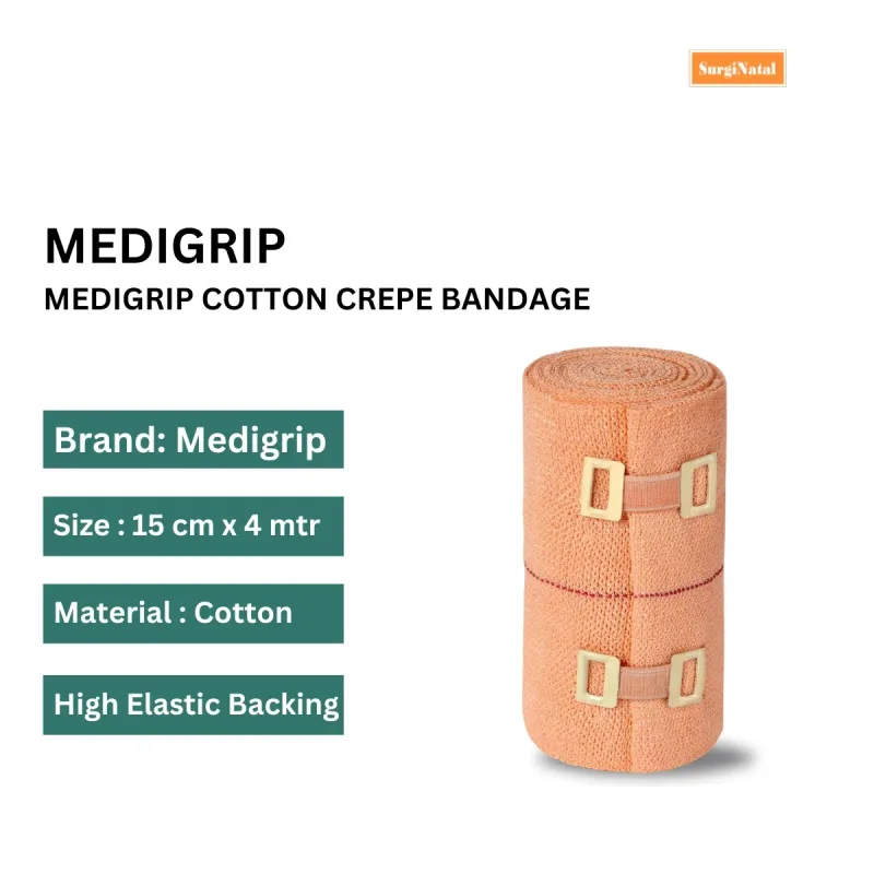 Medigrip Cotton Crepe Bandage is a medical elastic bandage used to provide excellent support for muscle injuries, sprains, and fractures. It is made from woven fabric with elasticity in the warp, it ensures a snug and secure fit without any joints.