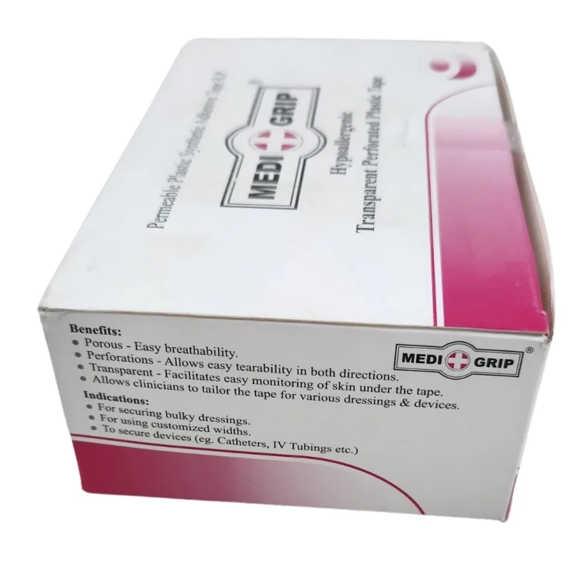Medigrip Permeable Plastic Surgical Synthetic Adhesive Tape is a medical tape used to provide secure fixation of dressings and medical devices while allowing the skin to breathe.