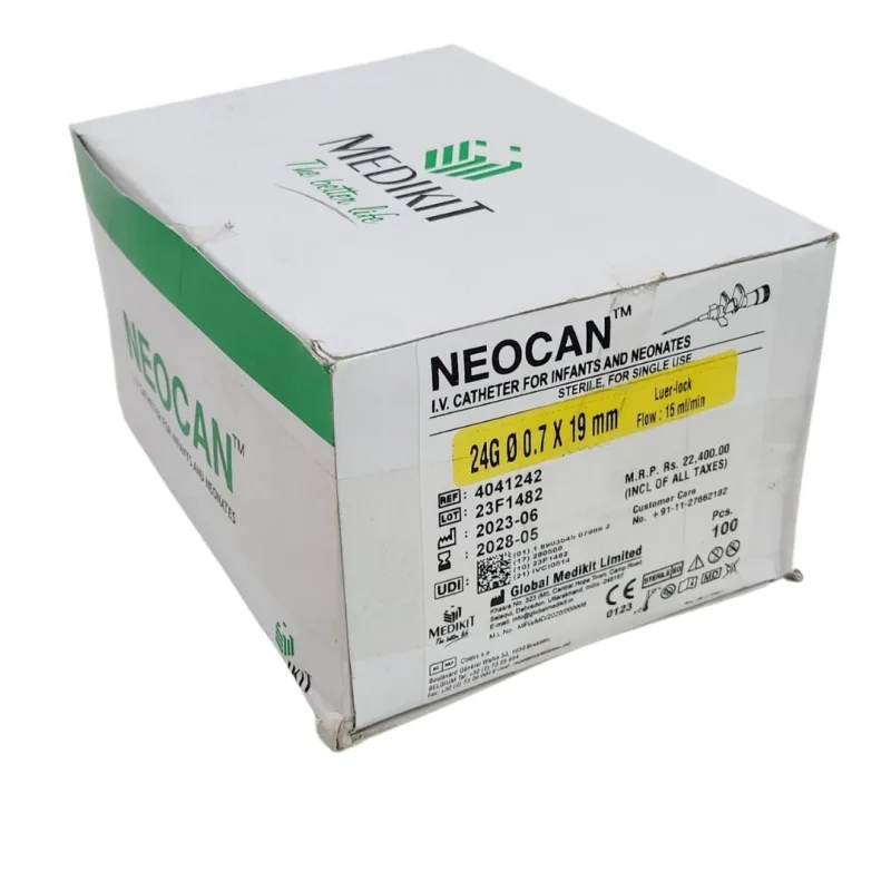 Medikit 24G IV Cannula Neocan is an intravenous cannula used specifically for neonates. Its small gauge size of 24G ensures gentle and smooth venous access, reducing discomfort and minimizing vein trauma.