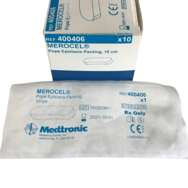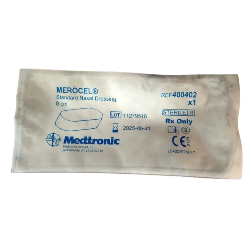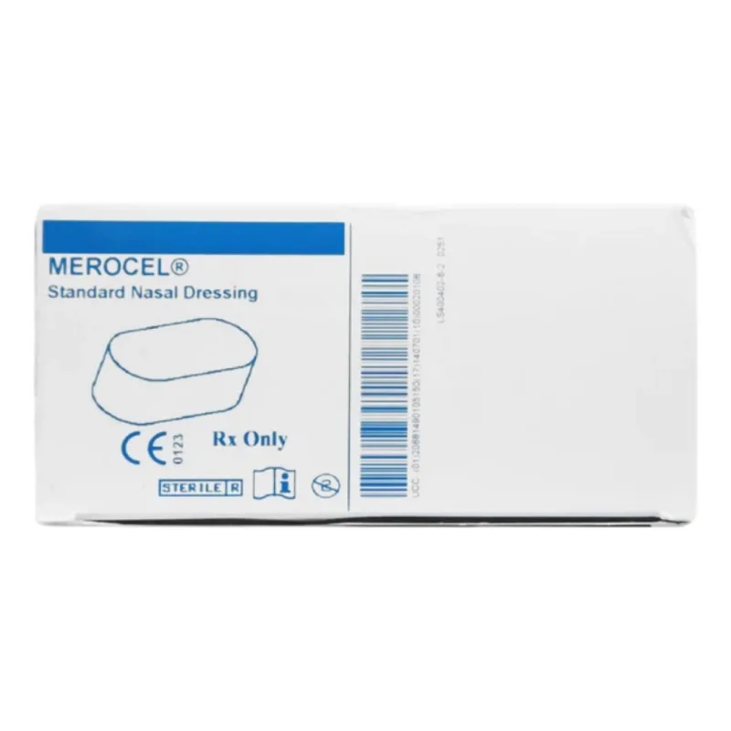 Merocel Standard Nasal Dressing is a medical product designed with bioresorbable nasal packing and sinus stent that supports healing after nasal surgeries or injuries. It is made from a unique combination of 80% esterified hyaluronic acid and 20% collagen, which helps control light bleeding and supports faster healing of the nasal tissues.