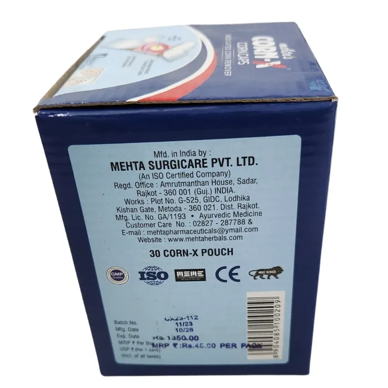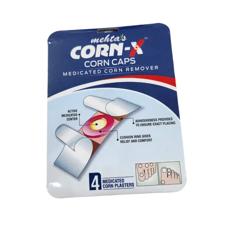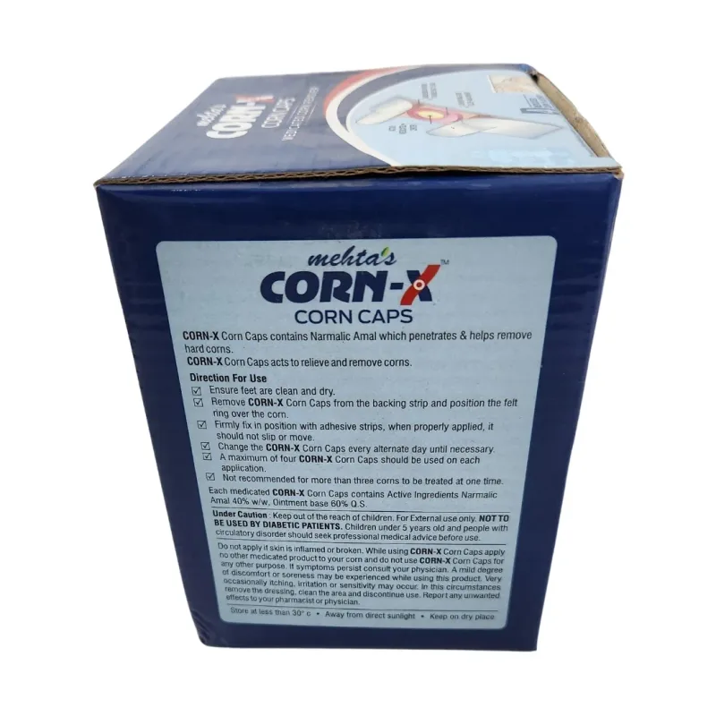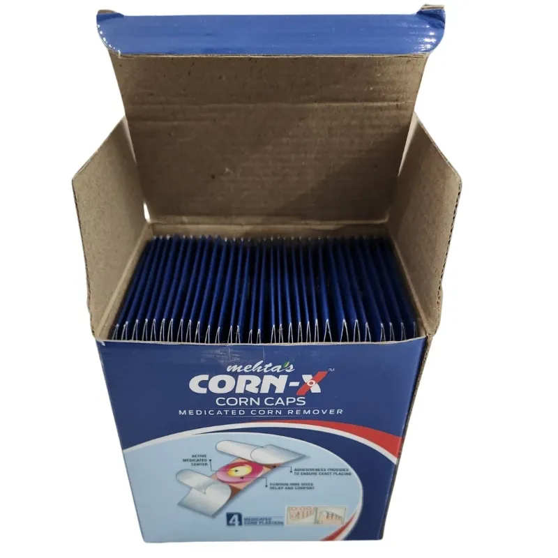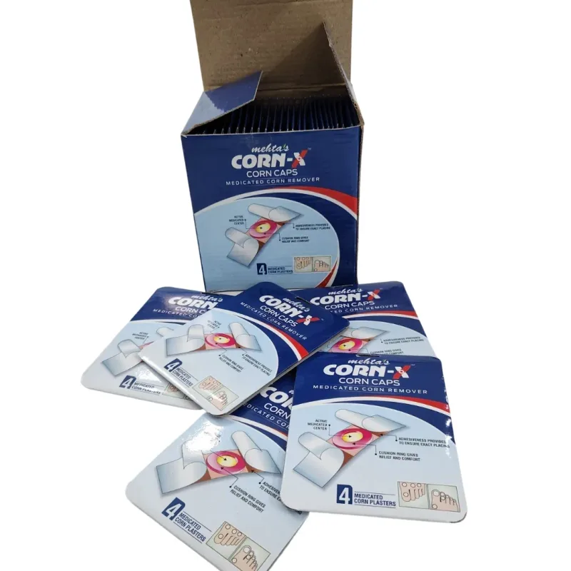 Corn Caps Medicated Corn Remover-box of 30*4 is a necessary medicated adhesive plaster or patches with salicylic acid to remove corn from the feet. These caps soften the corn, making removing it easier without causing pain.