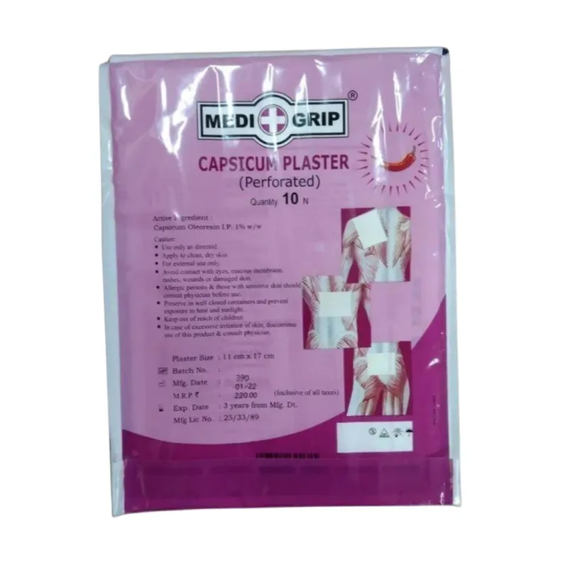 Medigrip Capsicum Plaster-10 Sheets are medicated plasters used to relieve pain, especially in cases of arthritis or muscle soreness, and are highly effective as pain relievers.