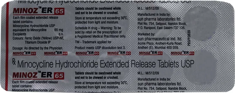 Minoz Er Tablet is an antibiotic containing Minocycline as its active ingredient. It is used to treat a variety of bacterial infections of the skin, respiratory tract, urinary tract, private parts, etc. This medicine should be used only under medical prescription.
