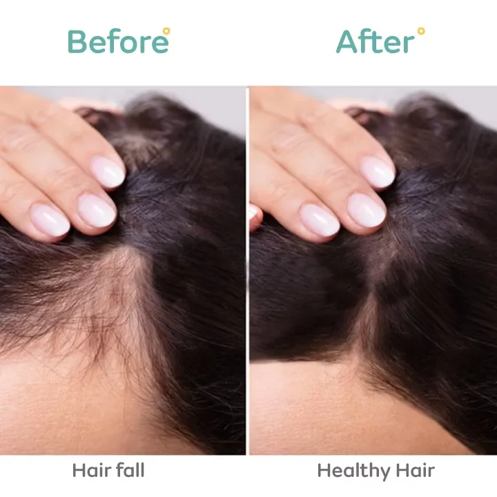 Hair breakage and Hair loss are a common impact of hormonal imbalances in pregnancy and motherhood. During this time, you would not want to use any chemical shampoos or medications as it can harm your body and baby.