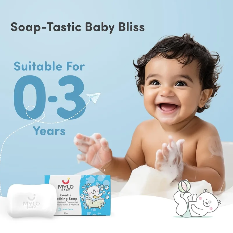 Babies’ skin is delicate, which is why they need a gentle and nourishing soap. Mylo Baby Soap has the goodness of Vitamin E, Murumuru Butter, Jojoba Oil & Coconut Oil which keeps babies’ skin hydrated, soft and irritation-free.