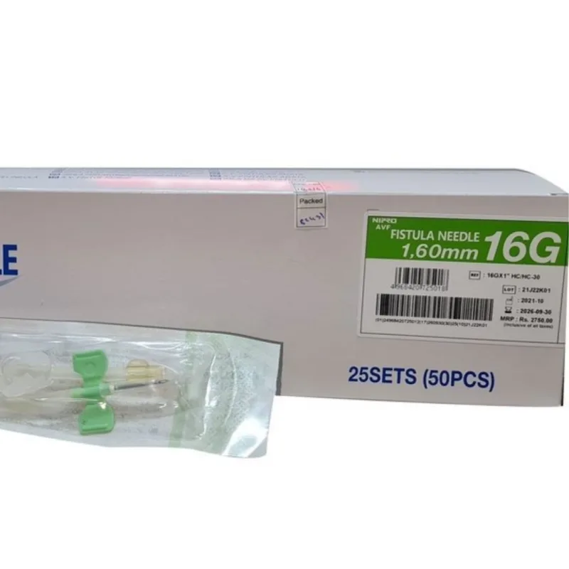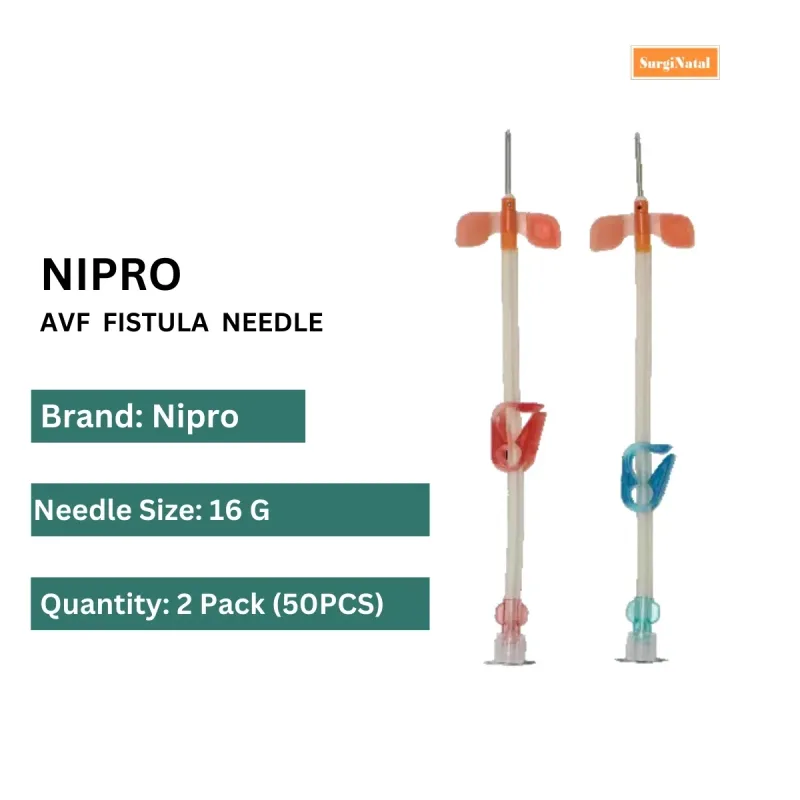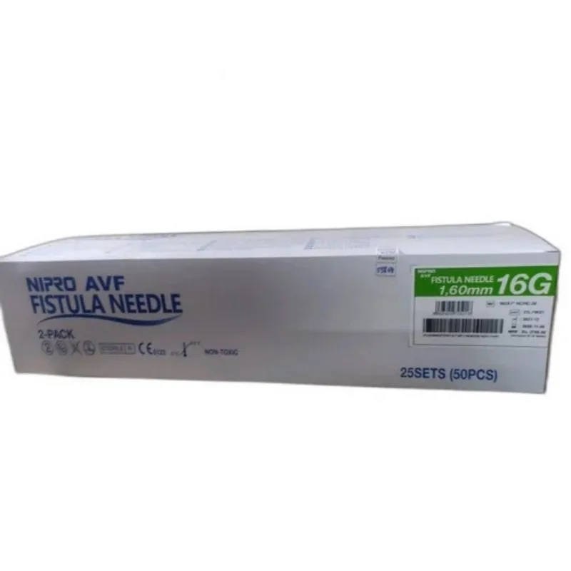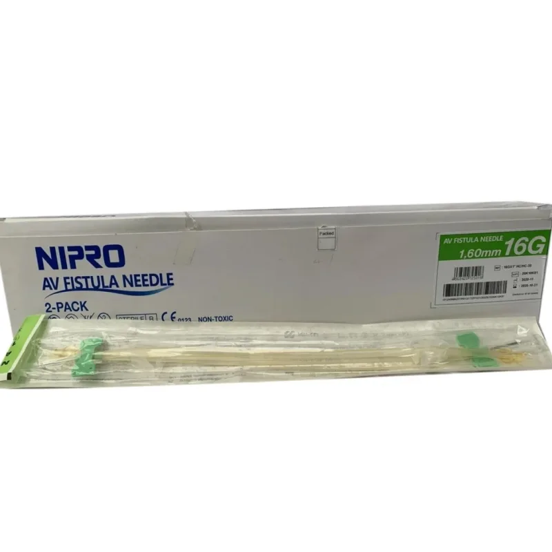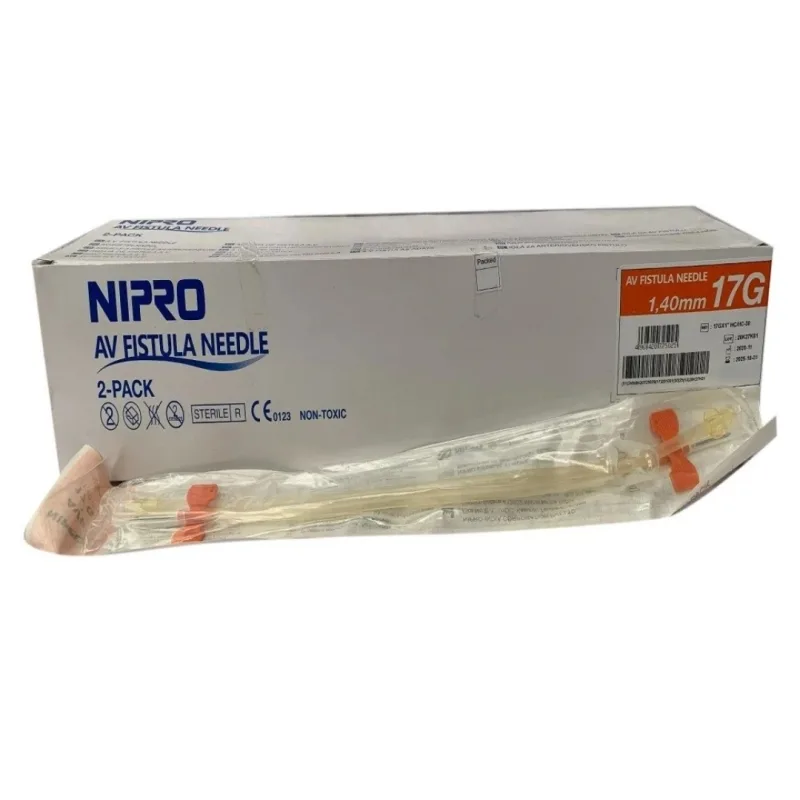 Nipro AV Fistula Needle is a medical device used to ensure a safe and effective dialysis experience for both patients and healthcare professionals. It has an ultra-sharp, siliconized 3-bevel tip that allows for smooth and comfortable cannulation with a focus on minimizing vessel trauma and optimizing blood flow.