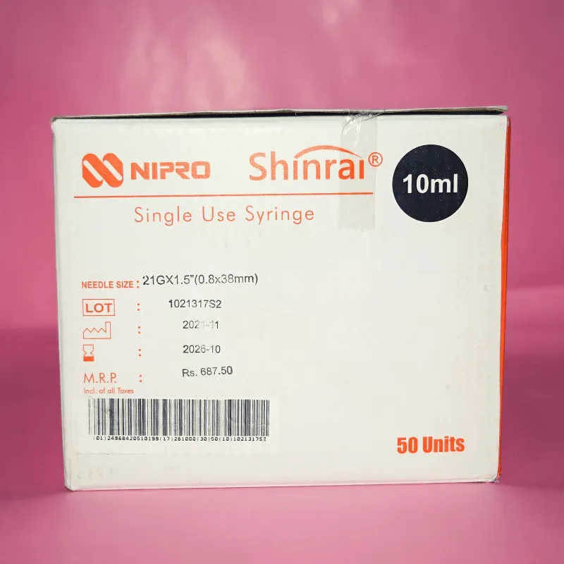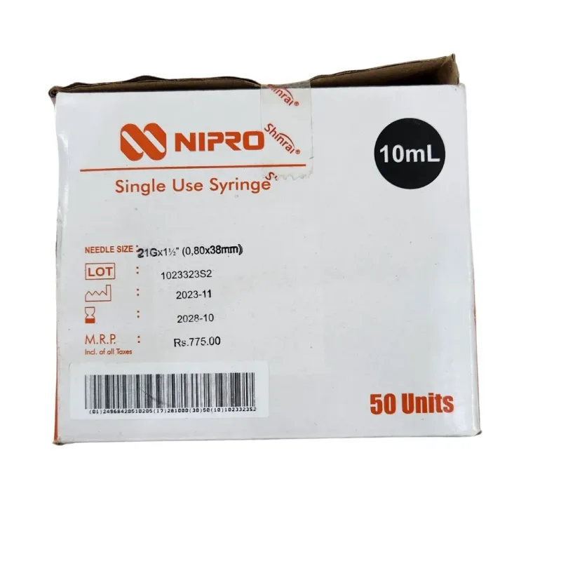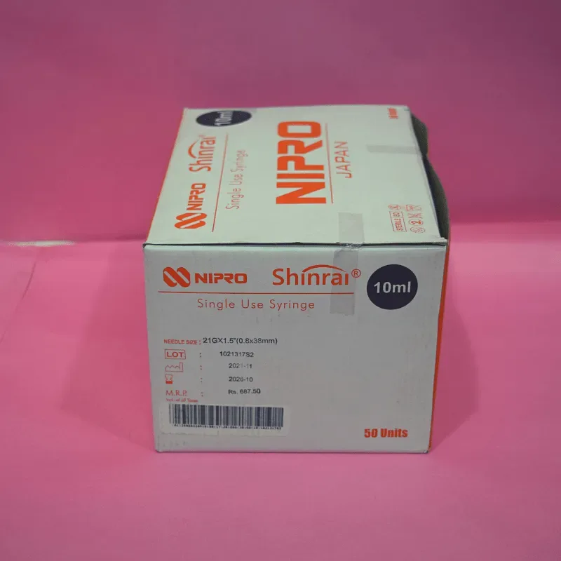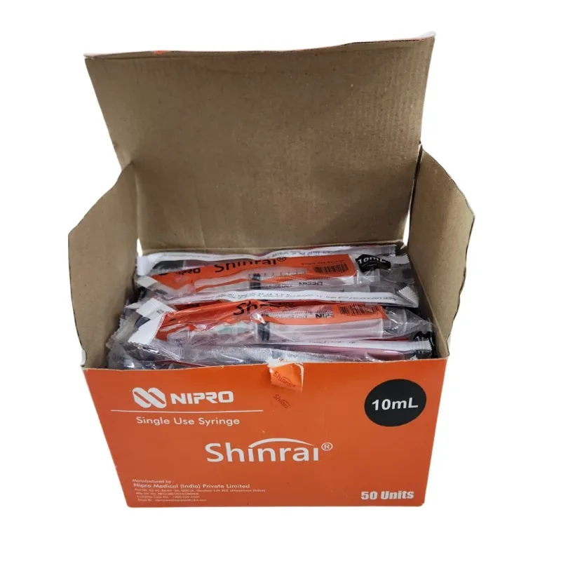 Nipro Shinrai Syringe With Needle 10ml - 21G Needle - 50 Units Pack is a medical device used to deliver fluid medicine into the patient's body. It is made of medical grade material which means not made with latex, BPA, DEHP or PVC.