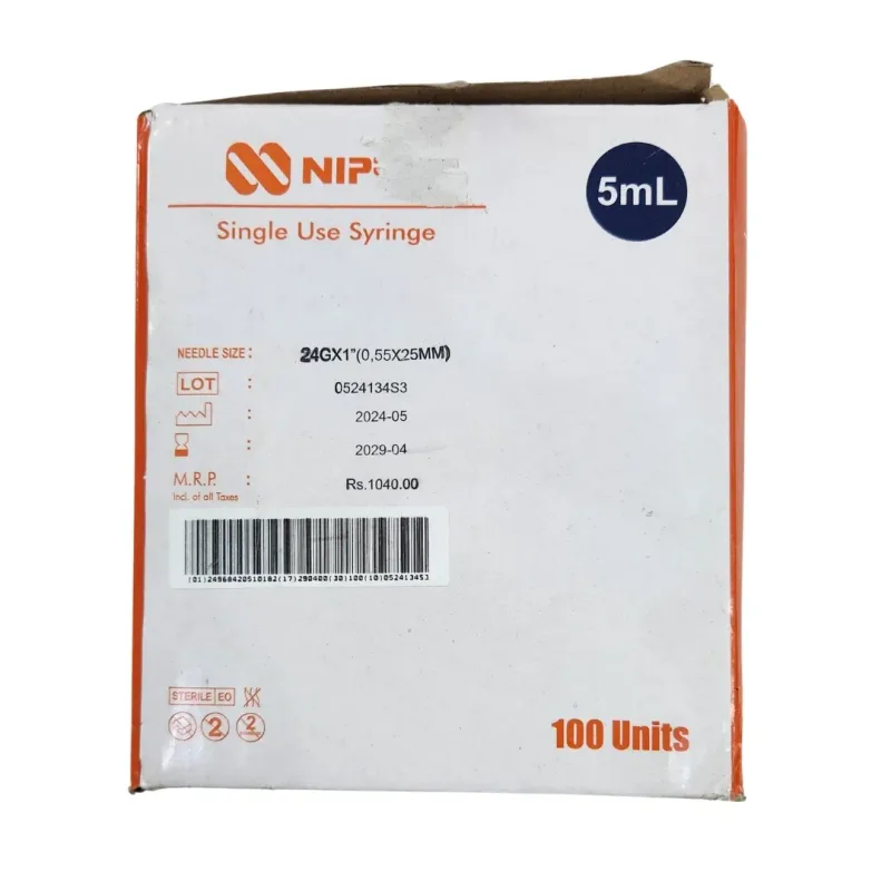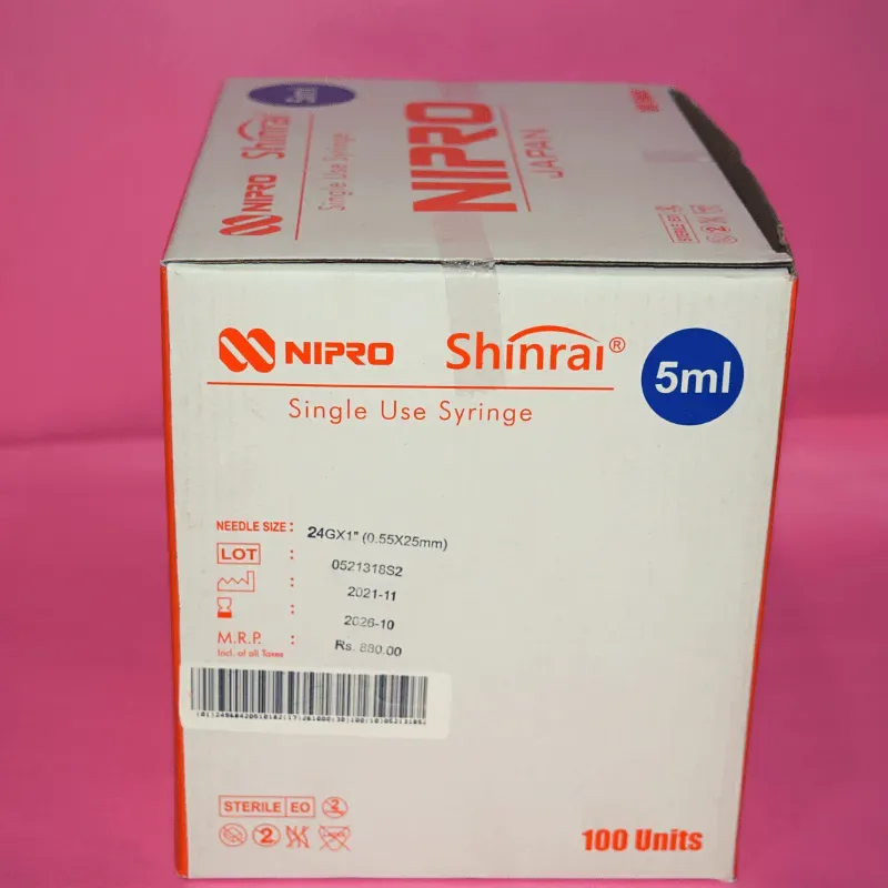 Nipro Shinrai Syringe 2ml with 24G*1inch Needle - 100 Units Pack is a medical device used to deliver fluid medicine into the patient's body. It is made of medical grade material which means not made with latex, BPA, DEHP or PVC.