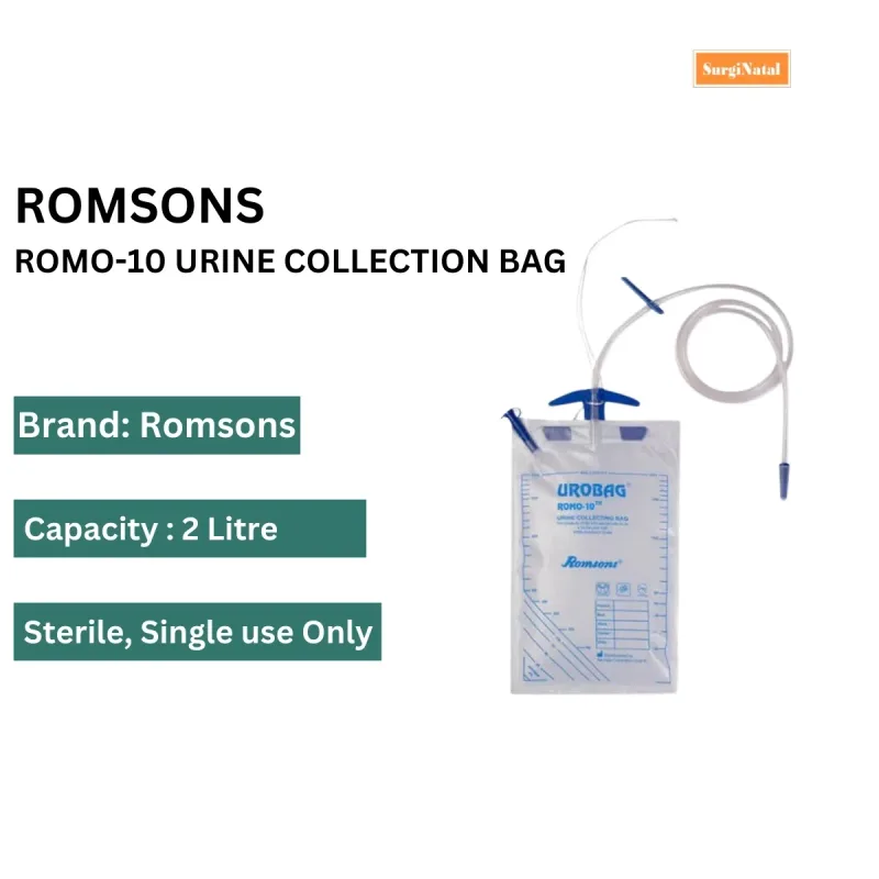 Romsons ROMO-10 Urine Collection Bag is a medical device used to collect and store urine for a long and short period. It is made up of medical-grade plastic to ensure leak prevention.