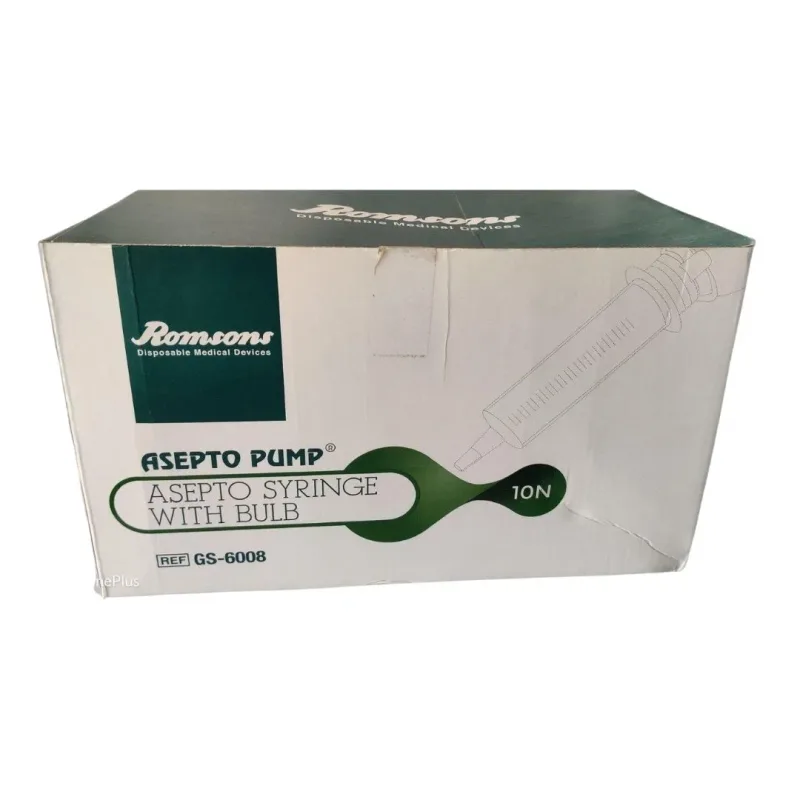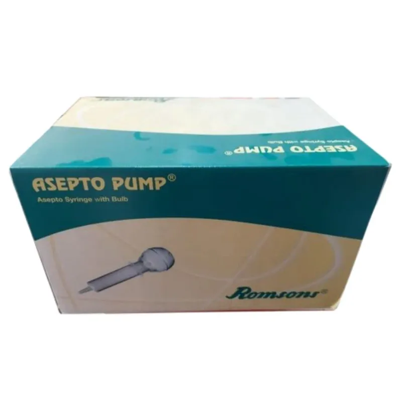 Romsons Asepto Pump (GS-6008) is a medical device used for feeding and irrigation during various surgical procedures. It is a sterile transparent Bulb irrigation syringe made up of high-quality PP and the bulb is from TPE. It consists of a catheter mount centric nozzle consistently suitable for catheter connectors.