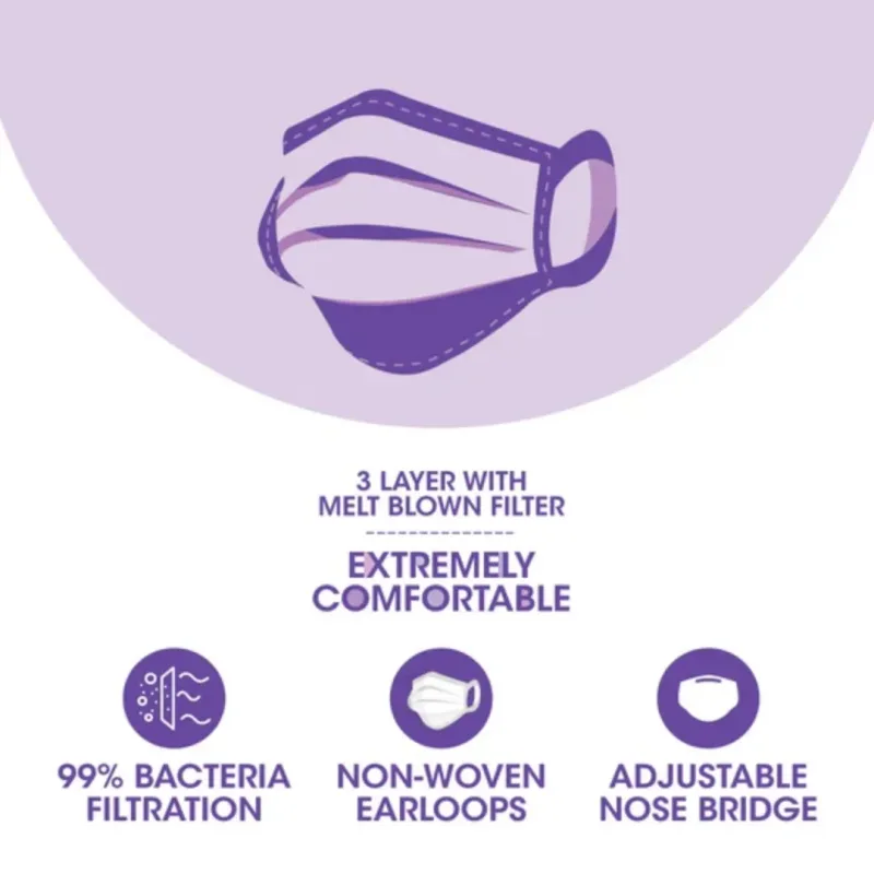 These medical masks are made up of a medical grade non-woven layer with a melt-blown filter that provides 99% bacteria filtration efficiency. It comes with tie-on earloops which can be easily adjusted and give comfort to the wearer.