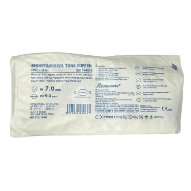 Romsons Endotracheal Tube Cuffed is a medical device used to open the airway for the patient who finds breathing difficult to provide a secure airway during surgeries, intensive care, and emergency situations.