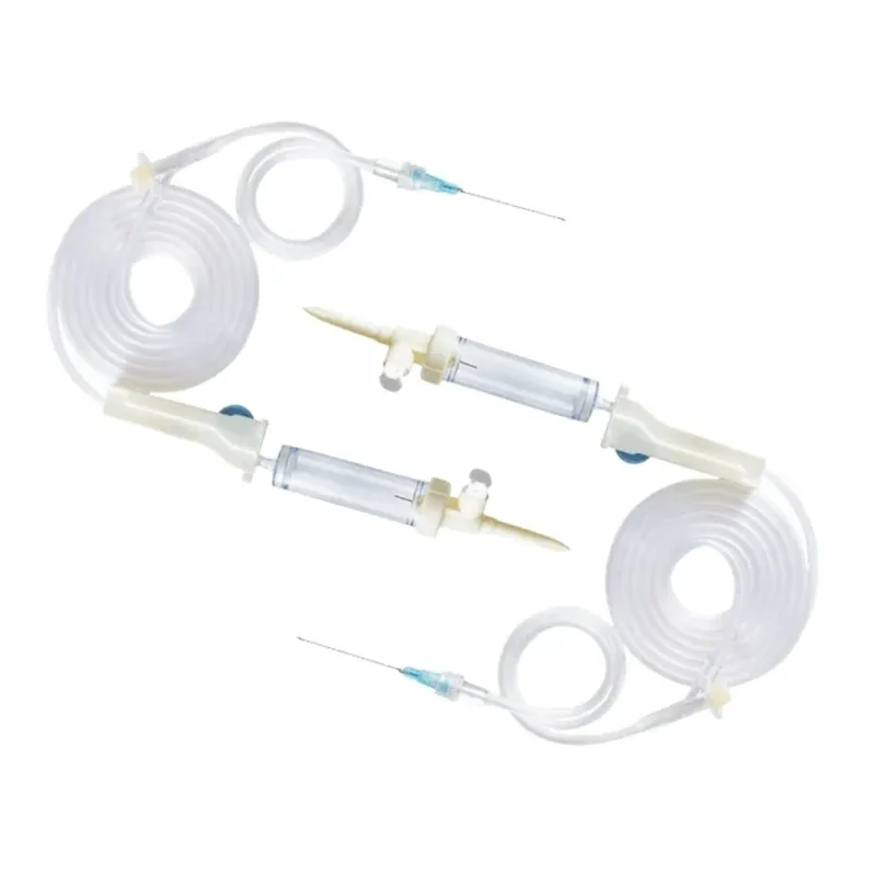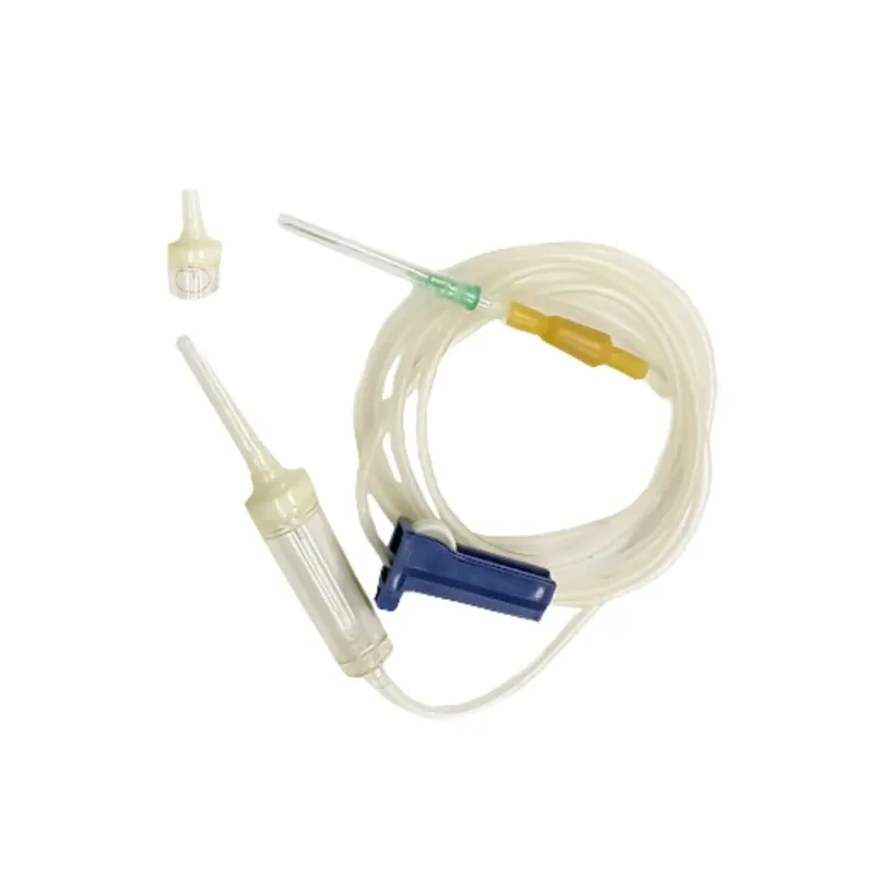 A disposable infusion set includes a thin kink resistant plastic tube cannula which comes in different lengths to help with flexible infusion, a stainless steel needle is used at the end for skin puncturing, and a cylindrical collapsible drip chamber monitors the flow rate.