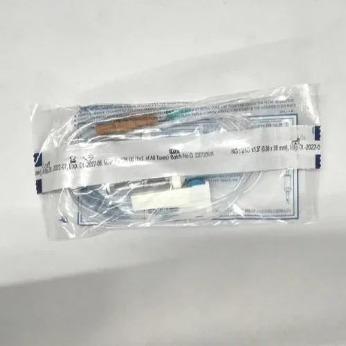 It is made of transparent non toxic P.V.C material with built in air vent and bacteria barrier hydrophobic filter. It comes with a latex free "Y" type injection port for additional medication, made of polyisoprene and a roller controller for better flow control.