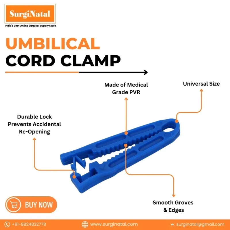 These sterile cord clamps come with grooves along the length to prevent the umbilical cord from slipping and to keep it in place. These are blue designed to avoid bleeding by securely shutting up the blood vessels in the cord after it has been cut.