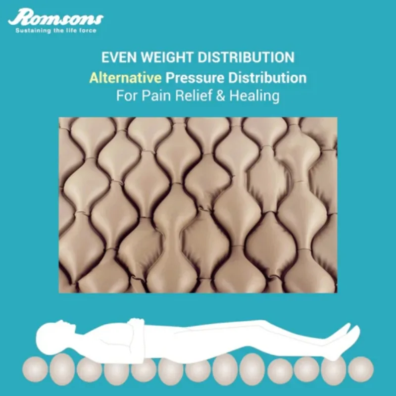 Romsons NOSOR Bubble Mattress with Air Pump is a pressure-relieving support surface used to prevent and aid in the healing of bedsores (pressure ulcers) in patients who are bedridden for extended periods.