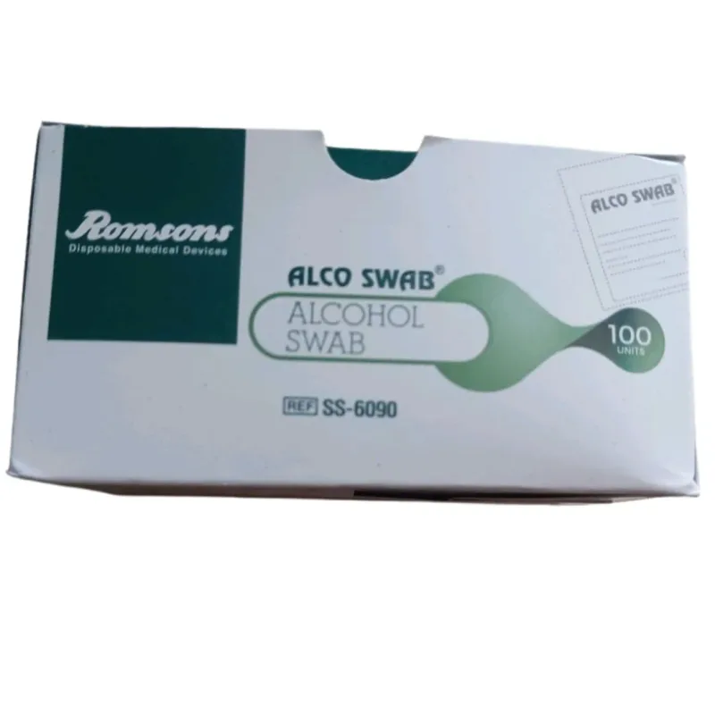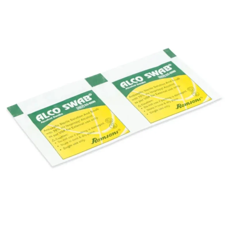 Romsons Alco Swab is an alcohol-saturated gauze pad used for quick and effective disinfection. Each swab is pre-moistened with 70% V/V Isopropyl Alcohol, making it ideal for cleaning the skin before injections, treating minor cuts, and preventing infections.