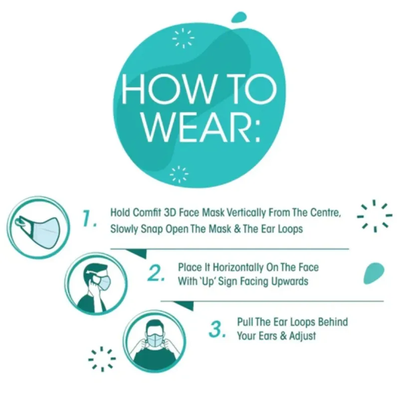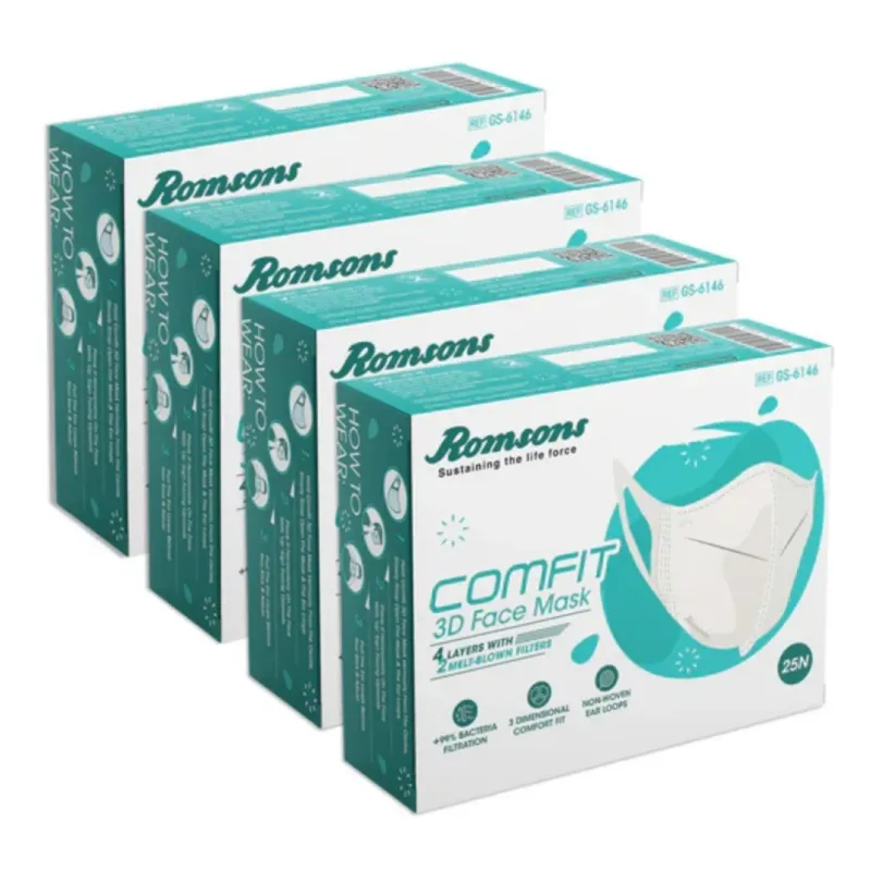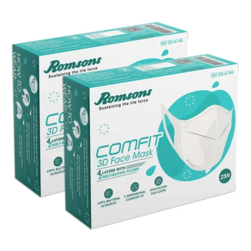 Romsons Comfit 3D Face Mask is a disposable protective mask used for one-time use. Its unique 3-dimensional design fits all face shapes perfectly while giving enough breathing space, making it ideal for daily wear.