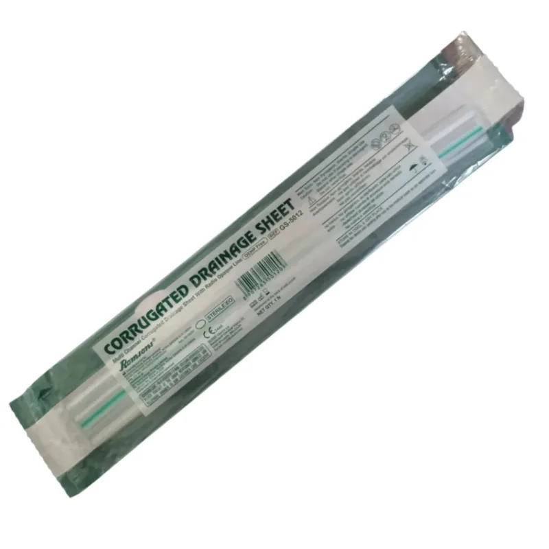 Its soft and flexible material ensures patient comfort while minimizing irritation or inflammation. These corrugated drainage sheets come with a radio-opaque line running throughout its length, allowing clear visibility under X-ray.