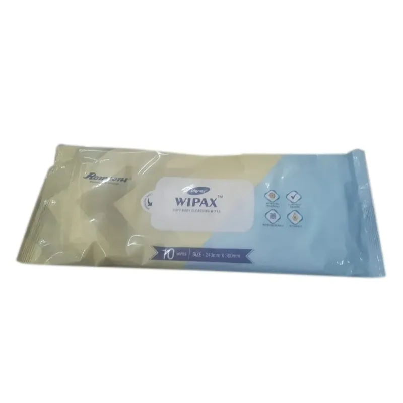 Romsons Dignity Wipax Adult Body Cleansing Bed Bath - 10 Wipes are best for adult body hygiene care. Highly used for sprung purposes by patients who can’t take a bath. The adult wet wipes have a pleasant fragrance with aloe vera extracts.