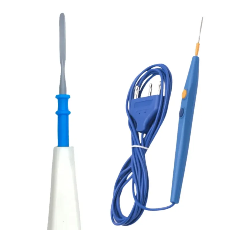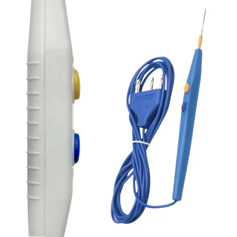Its unique mix of 'Cut' and 'Coag' modes allows for controlled dissection with imposed hemostasis while also providing the least tissue drag. Electro-Surgical Pencil is ergonomic, ensuring solid gripping and preventing slipping. It consists of a tip cleaner that maintains hygiene.