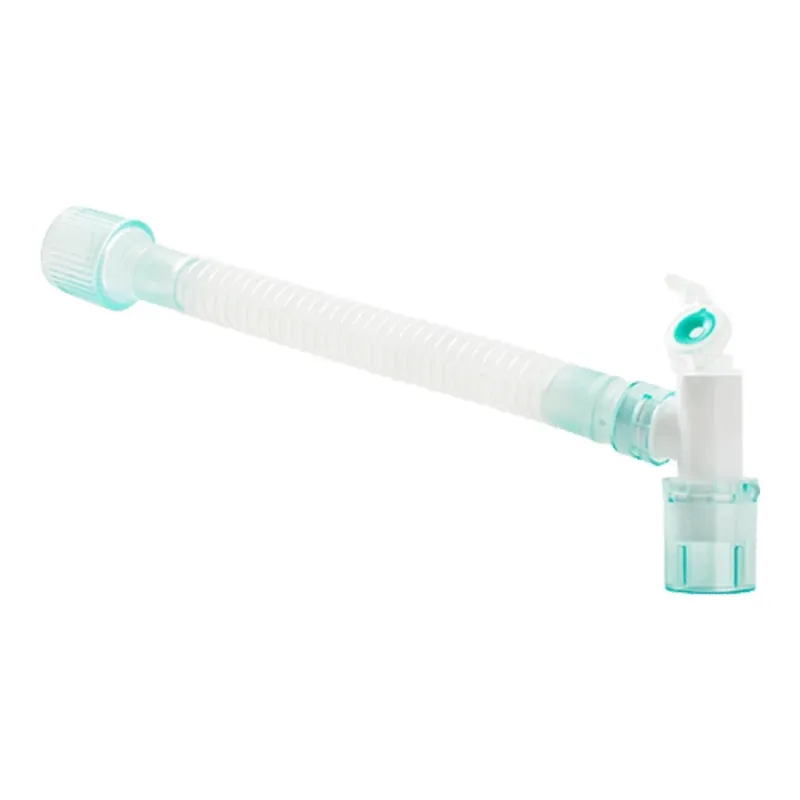The Flip Tap Catheter Mount acts as an intermediary between the patient's airway device and the respiratory equipment. It provides a secure and leak-free connection while allowing flexibility and easy manipulation of the tube. The "flip tap" mechanism refers to a valve or switch that can be opened or closed to control the airflow or to facilitate suctioning or other respiratory procedures.