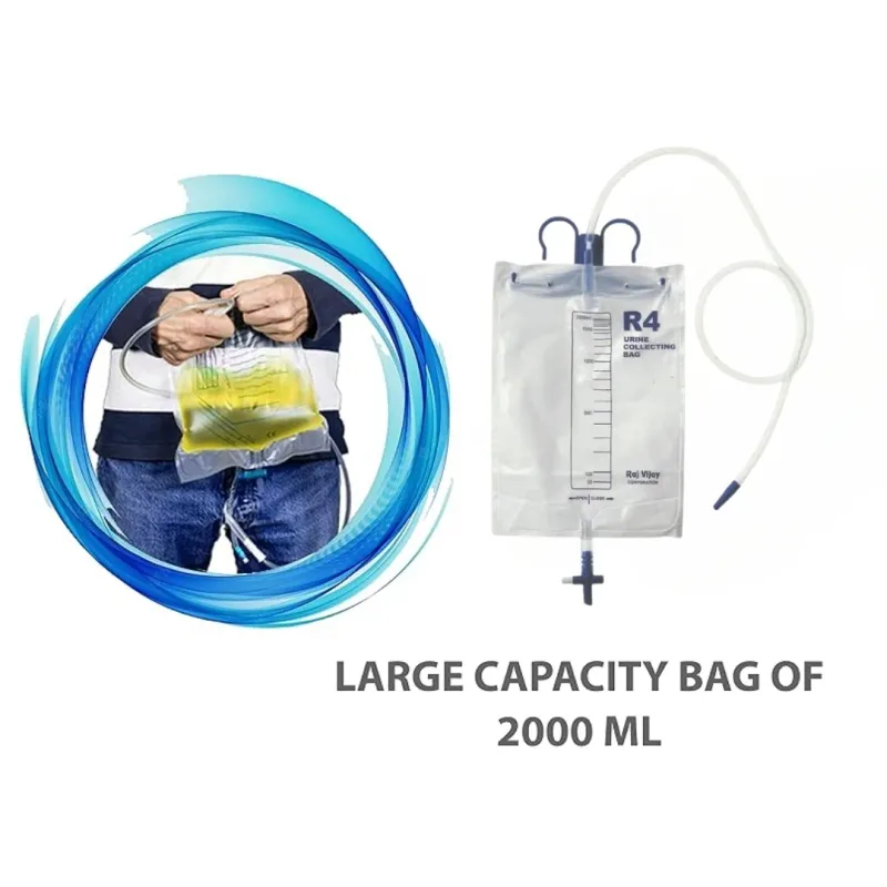 Romsons R-4 Urine Collecting Bag (DB-1092) is a medical device designed, 100% closed drainage system that ensures hygiene and safety for patients requiring urine collection. It is made from strong yet transparent material, allowing for easy monitoring of urine color and volume.