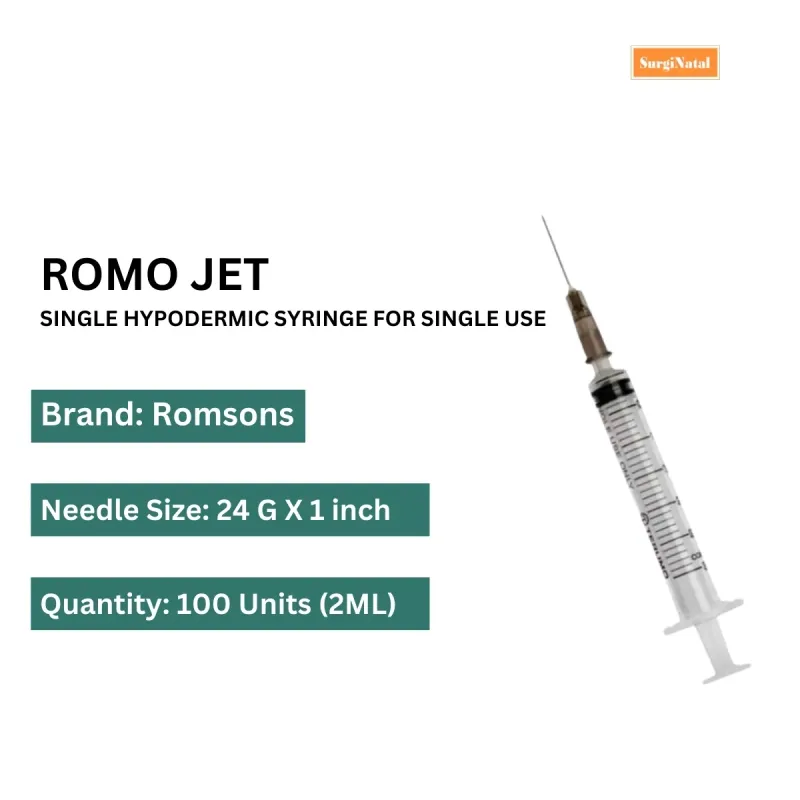 Romsons Romo Jet Syringe with 2ml Needle is the best surgical product to deliver meditation into the body, and it is exclusively designed for safe and successful injections.