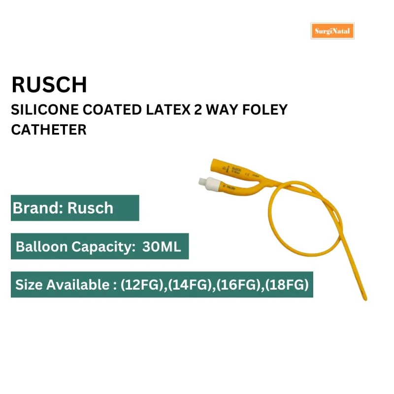 RUSCH Silicone Coated Latex 2 Way Foley Catheter is a high-quality silicone-coated latex medical device. These urinary catheters are flexible tubes that are used to drain urine from the bladder. It’s an essential tool in urology, and critical care ensures comfort and security.